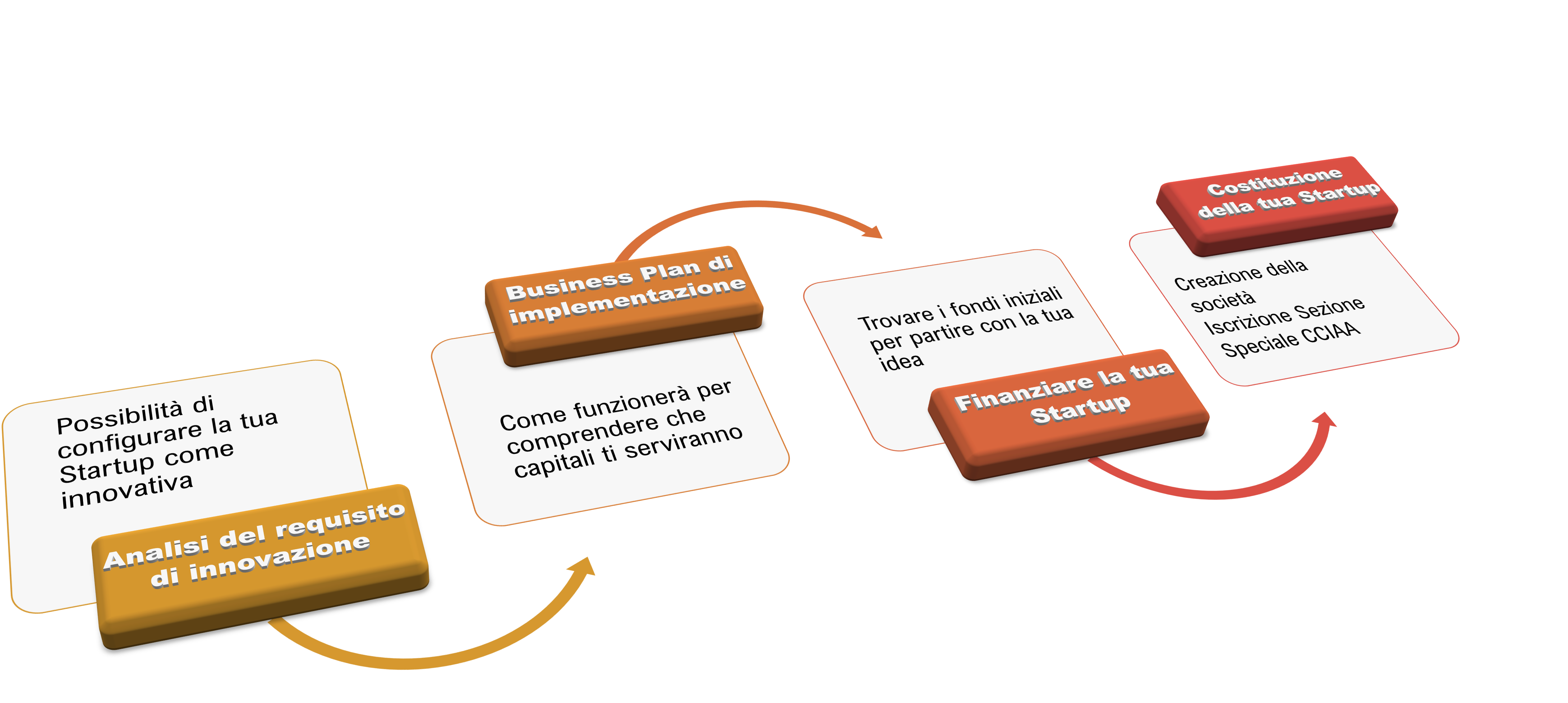 Ti accompagnamo nella creazione, finanziamento e funzionamento della tua Startup con un processo di derivazione manageriale grazie alla nostra esperienza ventennale maturata in 3 importanti Multinazionali.